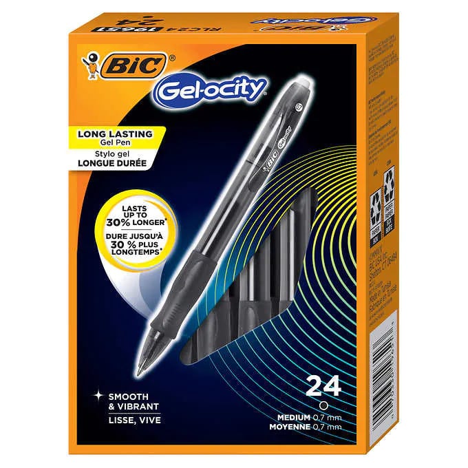 The BIC Gel-ocity Black Gel Pen is the perfect choice for all your writing needs. This pen is designed with a black barrel, cushioned grip and retractable design for comfortable and convenient writing. The 0.7mm medium point delivers a smooth writing experience with vivid black colour. The pack of 24 ensures you always have one ready when you need it.