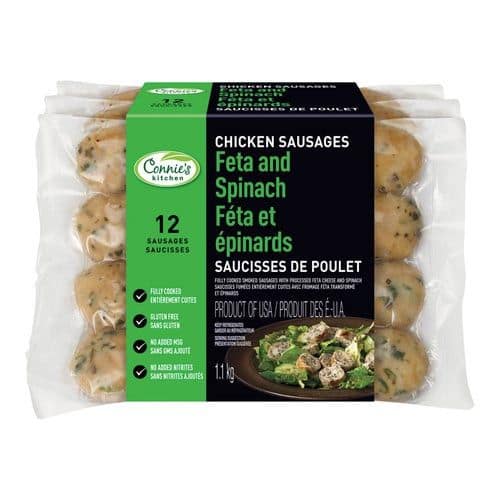 Indulge in the delicious taste of Connie's Kitchen Feta Spinach Chicken Sausages. Made with premium quality chicken and the perfect blend of feta and spinach, these sausages are perfect for any occasion.