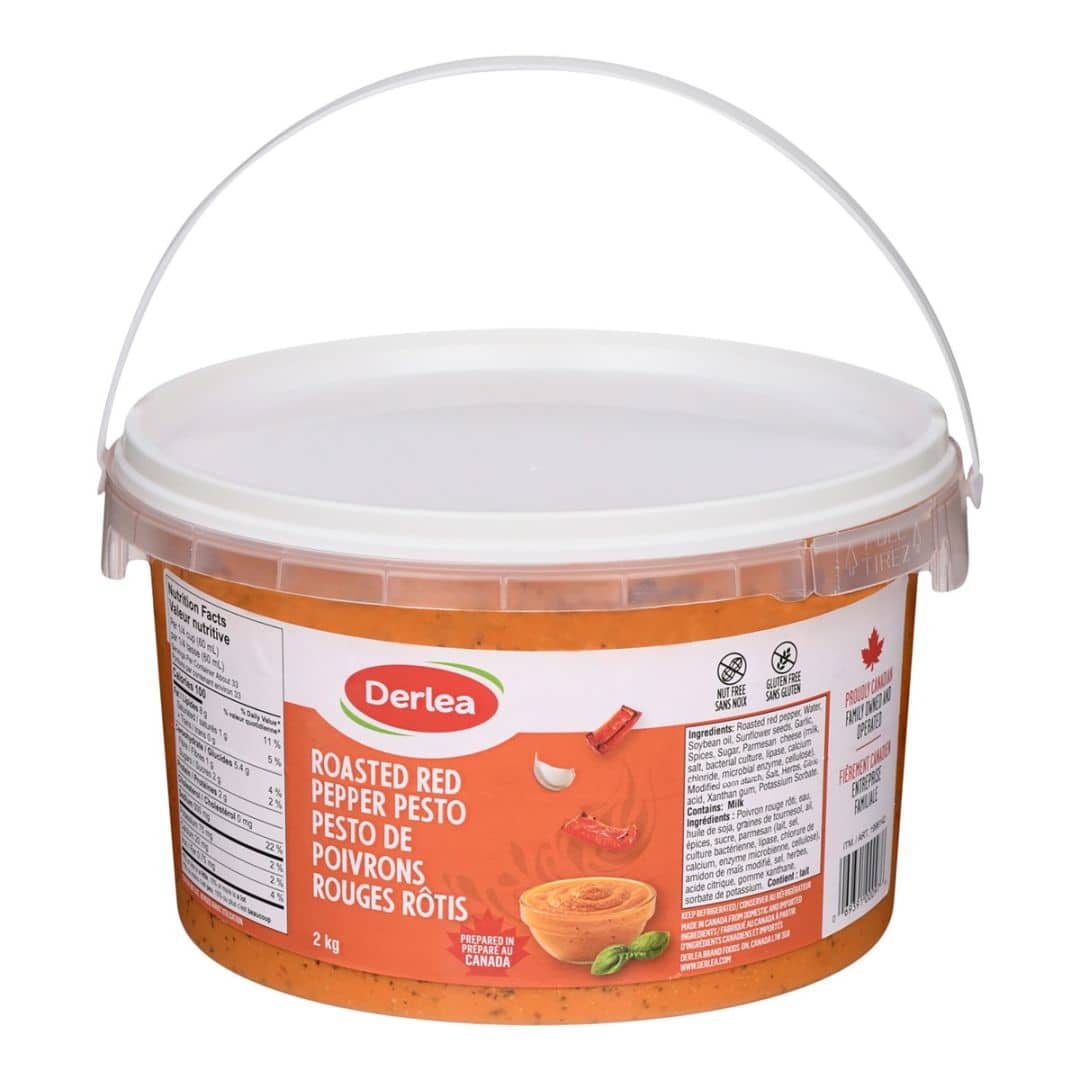 Enjoy the delicious and bold flavor of Derlea Roasted Red Pepper Pesto. Made with fresh red peppers, this savory sauce adds a burst of flavor to any dish. Perfect for pasta, sandwiches, and more, this pesto is a must-have in your pantry.