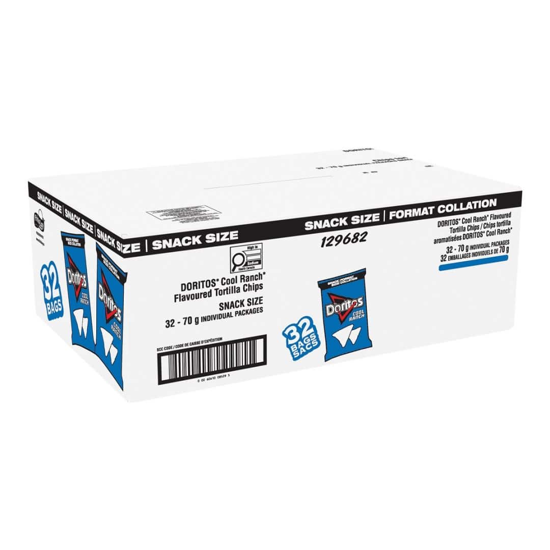 Experience the bold and tangy flavor of Doritos Cool Ranch chips. Made with real cheese and a unique blend of spices, these chips are perfect for snacking on any occasion.