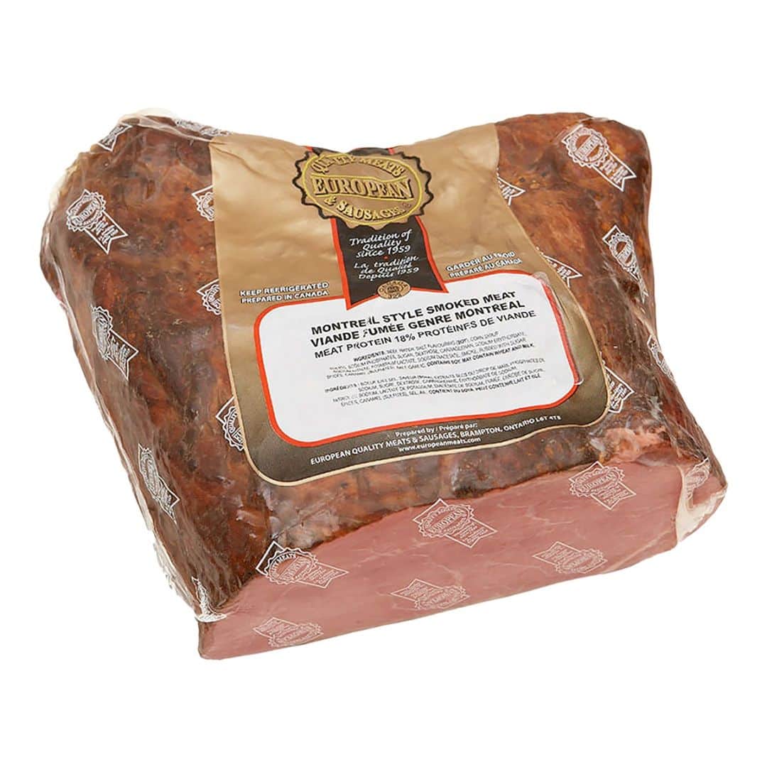 Try our delicious European Quality Meats Montreal Smoked Meat! Made with the finest quality beef and smoked to perfection, this meat is sure to satisfy your cravings. Perfect for sandwiches, platters, or even on its own, our Montreal Smoked Meat is a must-try for any meat lover.