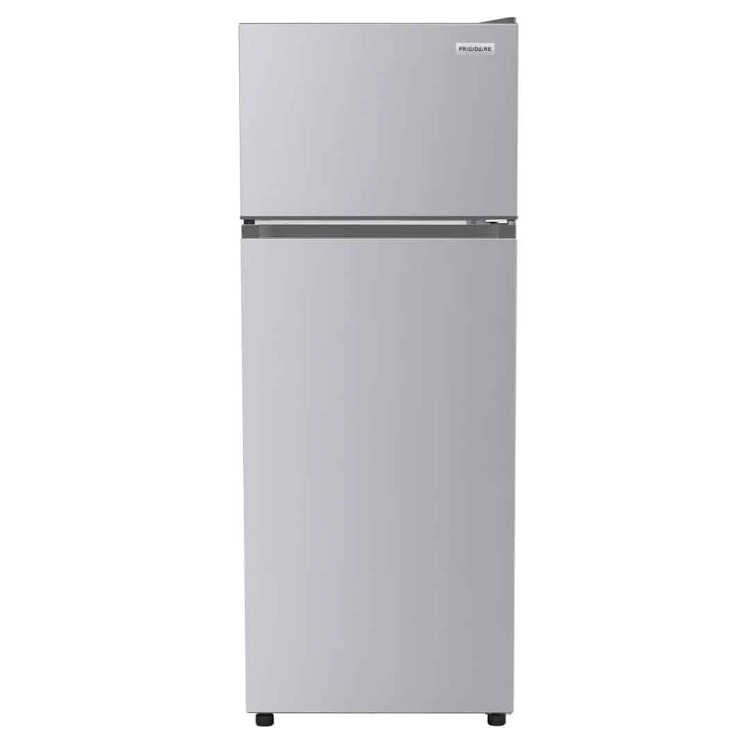 Introducing the Frigidaire 21.5 in. 7.5 cu ft. Stainless Steel Top-Mount Refrigerator with Reversible Door - the perfect solution for your kitchen needs. This sleek and stylish refrigerator offers ample storage space and a reversible door for easy access. With its stainless steel finish, it will add a touch of modern elegance to any kitchen. Don't miss out on this must-have appliance!