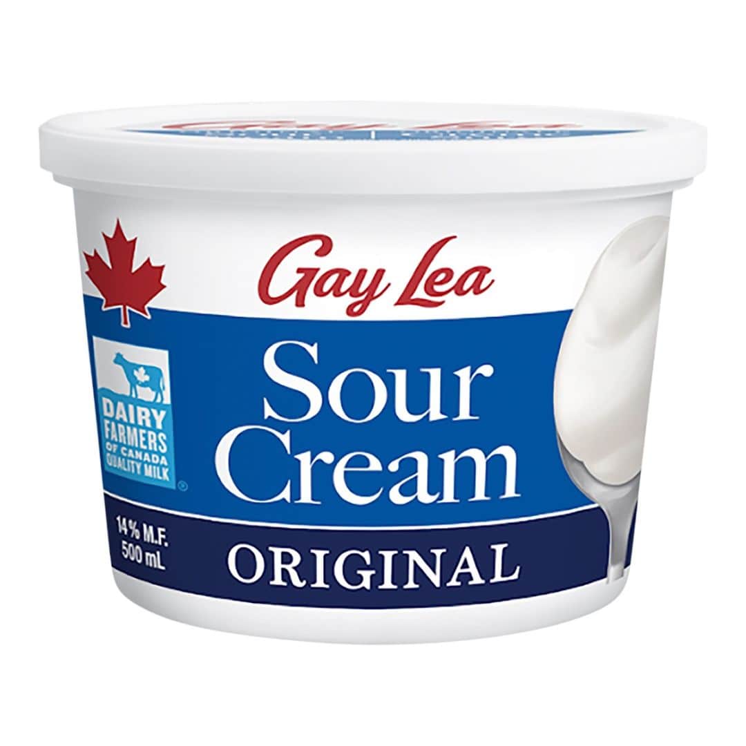 Indulge in the deliciousness of GayLea Sour Cream with 14% milk fat. This nut-free, pasteurized and certified kosher cream will elevate your dishes to a whole new level. Available in a convenient 500 mL container.