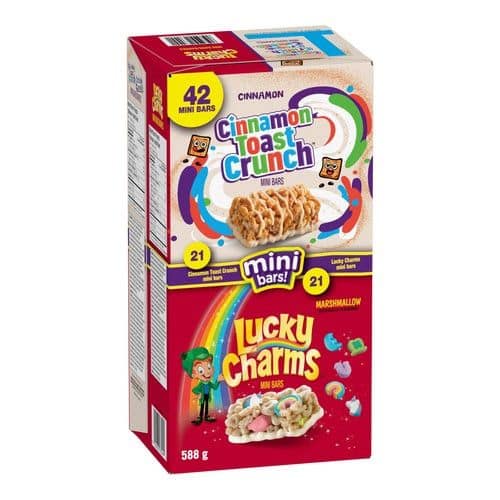 Enjoy the delicious taste of General Mills Mini Cereal Bars! These tasty bars are perfect for snacking on the go and are made with real cereal for a satisfying crunch. Each pack contains 42 bars, each weighing 14g. Perfect for sharing with friends and family or keeping all to yourself!