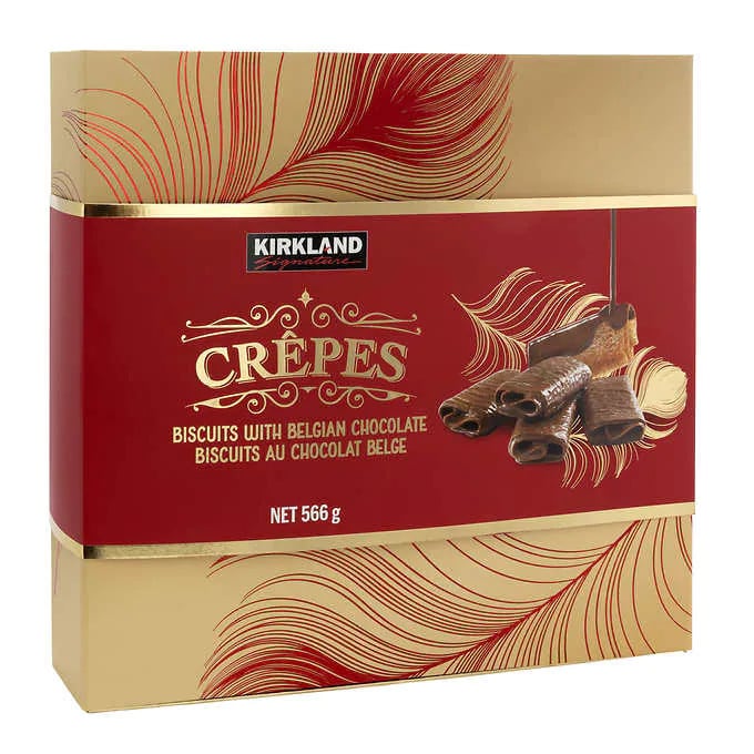 Indulge yourself with Kirkland Signature Crêpes. These delicious chocolate biscuits are made with Belgian chocolate, and come in a 566 g container. Satisfy your chocolate cravings with these rich and delicious treats.