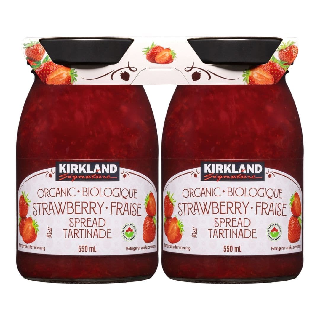 Introducing the new Kirkland Signature Organic Strawberry Spread, made from fresh, organic strawberries. Perfect for spreading on toast, pancakes, or adding to your favorite dessert, our strawberry spread is made with all natural ingredients and is free from preservatives. Enjoy the sweet and tangy taste of strawberries in every bite.