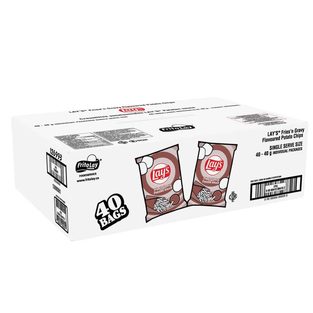 Introducing Lay's Fries & Gravy, the latest addition to the Frito Lay family! With 40 individual packages in each box, you'll never run out of these delicious chips. Perfect for snacking on the go or sharing with friends, these chips are sure to be a hit with everyone.