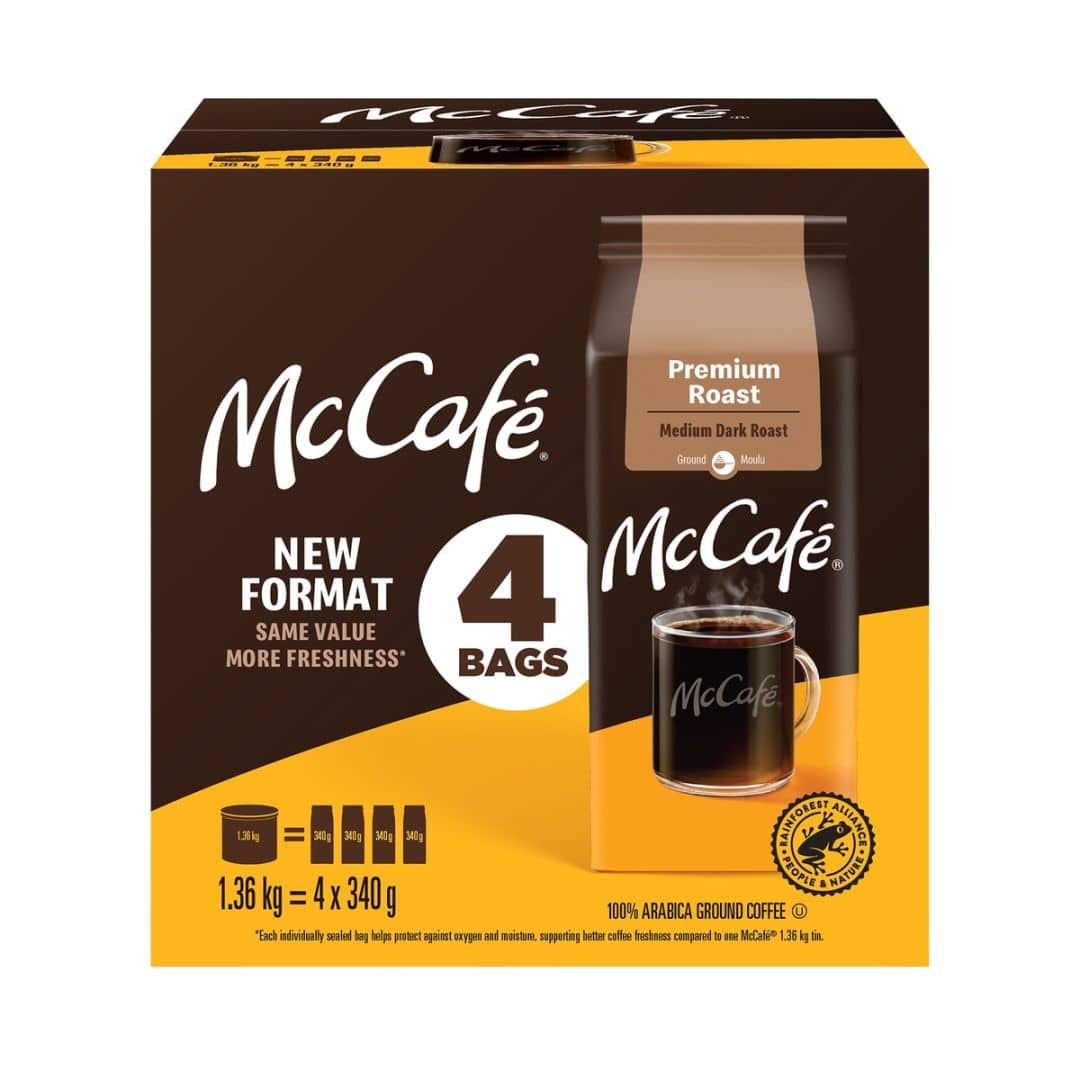 Introducing McCafé Premium Roast Fine Ground Coffee Arabica 4 X 340g - the perfect cup of coffee to start your day with! Made from premium quality Arabica beans and expertly roasted to perfection, this coffee is sure to give you the energy boost you need. Enjoy the rich and smooth taste of McCafé Premium Roast Fine Ground Coffee Arabica, now available in a convenient 4 pack of 340g bags.