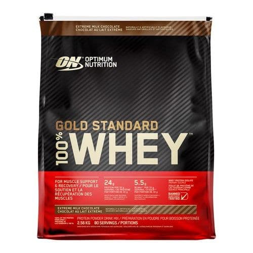 Get the ultimate workout boost with Optimum Nutrition Gold Standard 100% Whey Protein. Made with only the highest quality ingredients, this protein shake will help you build lean muscle, increase strength, and improve recovery time. With Extreme Chocolate Shake flavor, you'll enjoy every sip of this protein-packed drink.