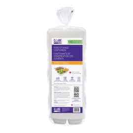 The Resto Hinged 3-Compartment MFPP Container is a great way to serve your guests with a variety of dishes. Made from mineral-filled polypropylene, it is microwavable and heat lamp safe. This pack includes 150 containers, with model BAN88C.