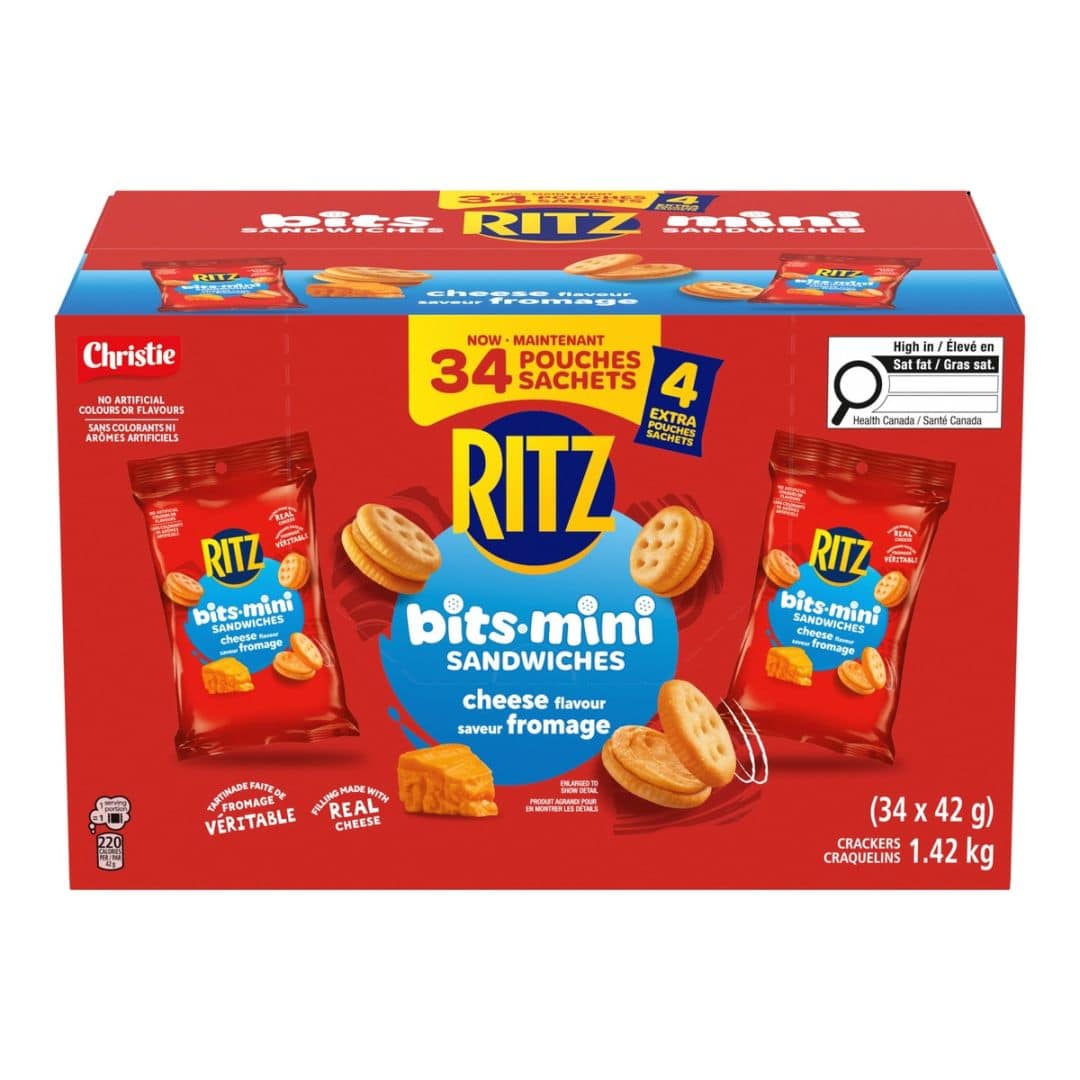 Delicious Ritz Bits Sandwiches, now in a family size pack of 34 x 42 g. Perfect for snacks, parties and lunch boxes.