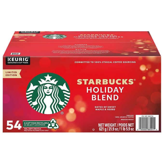 Enjoy the unique flavor of Starbucks Holiday Blend K-Cup coffee! This medium roasted blend is crafted with 100% Arabica beans and is compatible with all Keurig K-Cup brewing systems. Plus, it's committed to ethical sourcing with Conservation International. Get a taste of the holiday season with every sip!