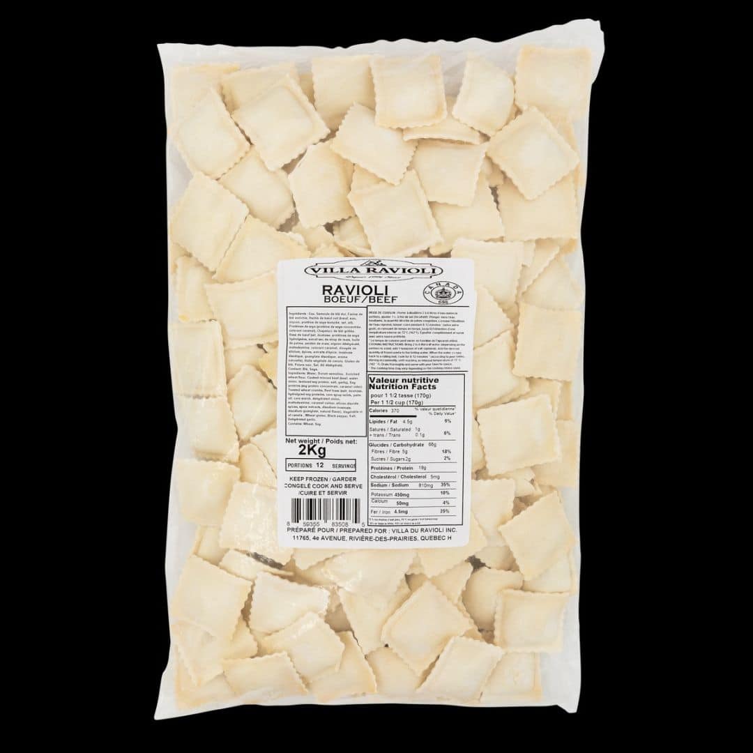 Introducing Villa Ravioli Frozen Beef Classic Ravioli, the perfect meal for pasta lovers! Made with high-quality ingredients, our ravioli is packed with flavor and ready to cook. Each bag contains 2 kg of uncooked, individually quick frozen beef ravioli that is sure to satisfy your cravings. Keep it frozen and enjoy whenever you want!
